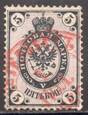5 коп. Чёрная / лиловая. Без водяного знака. Красное гашение. 1 марка.