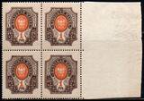 1 рубль. Коричневая / красная. Квартблок с полем листа.