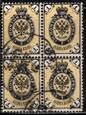 1 коп. Чёрная / Жёлтая. Перф. Рам. 14 1/2 : 15. Квартблок погашен.
