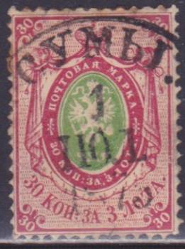 Почтовый штемпель: "Сумы 1 июля 1875".