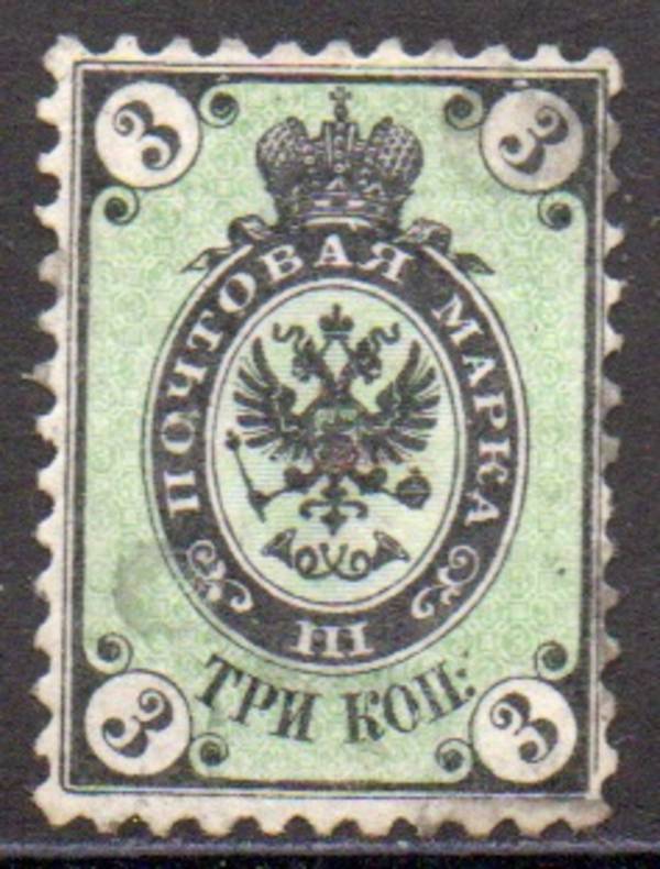 3 коп. чёрная / зелёная. Типография, без водяного знака. Перф. Рам. 12 1/2.