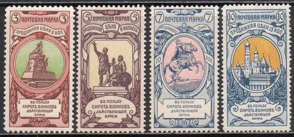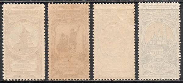 3+3 к., 5+3 к., 7+3 к., 10+3 к. Типография, без водяного знака. С зубцами. Свой клей.