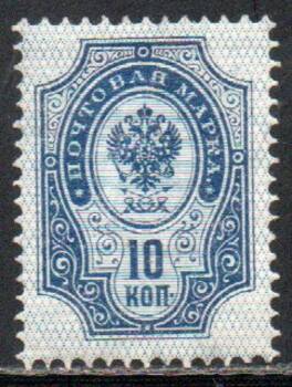 10 коп. Светло-синяя. Типография, горизонтальное верже. Перф. Рам. 14 : 14 1/2. Свой клей!