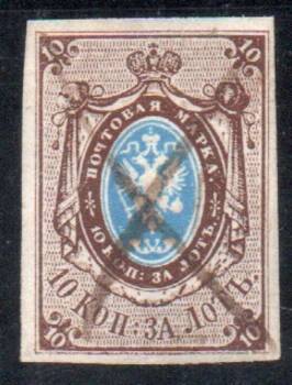 10 коп. за Лот. Погашена Пером. Водяной Знак " 1 " ( широкая ). Широкие поля.