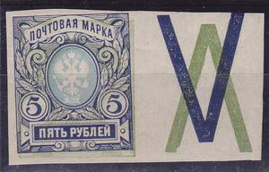 5 рублей, Сдвиг фона. Без зубцов с купоном, 1 марка