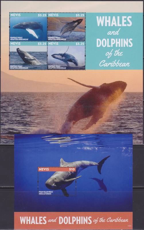 Киты и Дельфины Карибского Бассейна ( I ). 1 Малый Лист + 1 Блок.