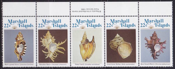 Морские Раковины. Штрайф из 5-ти марок.