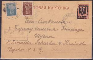 Почтовое отправление на карточке с надпечаткой Центральной Рады " Трезубец " и номинала " 10 коп. "