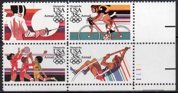 35 с х 4. Летние Олимпийские Игры 1984, Лос-Анжелес ( IV ). Серия 4 марки в Квартблоке.