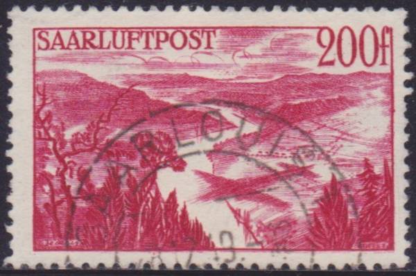 Погашена календарным штемпелем "SAARLOUIS -8.12.1949 - 12".