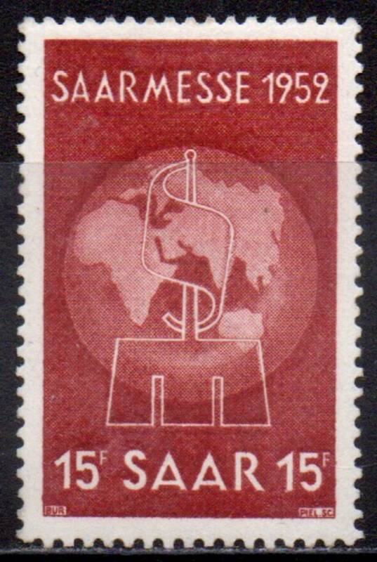 15 Fr. Ярмарка в Саарбрюкене. Эмблема Ярмарки. 1 марка.