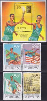 Первые участники с Сент-Китс и Невис на Олимпийских Играх. Серия 4 марки + Блок.