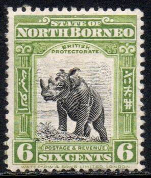 6 ц. Оливково-зелёная и чёрная. Носорог. 1 марка.