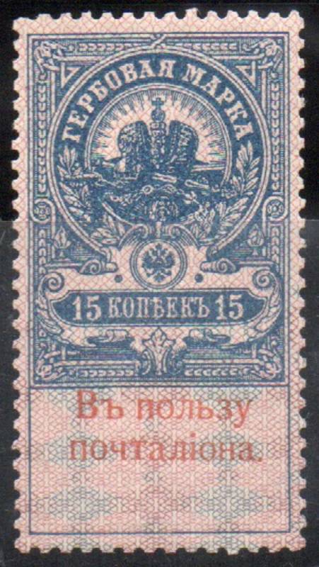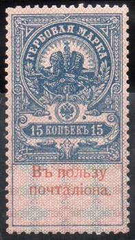 15 коп. Красная Надпечатка: "Въ Пользу Почталiона". 1 марка.