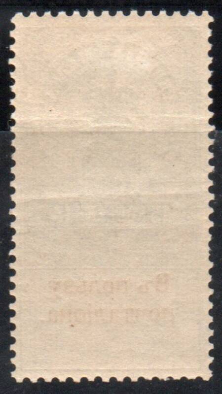 Красная Типографская надпечатка на Гербовой марке Российской Империи № Г3. Перф. Рам. 12 : 12 1/2. Свой клей. Два горизонтальных излома типографского характера. |