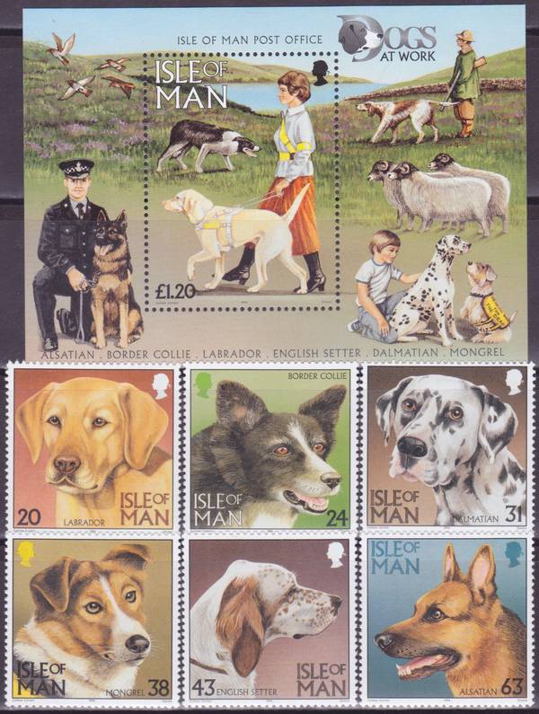 Породы Собак. Серия 6 марок + Блок.