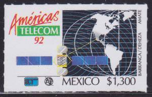 Карта Северной и Южной Америки: TELECOM '92. 1 марка.