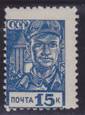 15 коп. Синяя. Рабочий-сталевар. Сдвиг перфорации. 1 марка.