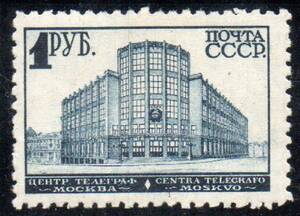 1 руб. Тёмно-синяя. Телеграф. Перф. Лин. 10 1/2. 1 марка.