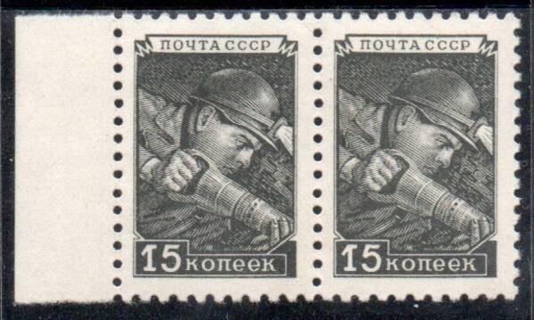 15 коп. Серая. Шахтёр. Большой размер. Пара марок с полем листа.