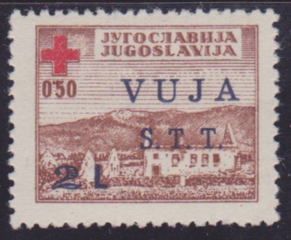 Надпечатка " VUJA S.T.T. 2L " на №5. Красный Крест. 1 марка.