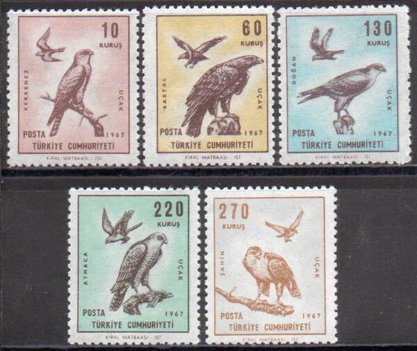 Хищные птицы. Авиапочта. Серия 5 марок.