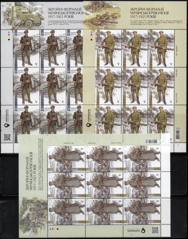Солдаты Украинской Революции 1917-1921 годов. 3 Малых Листа.