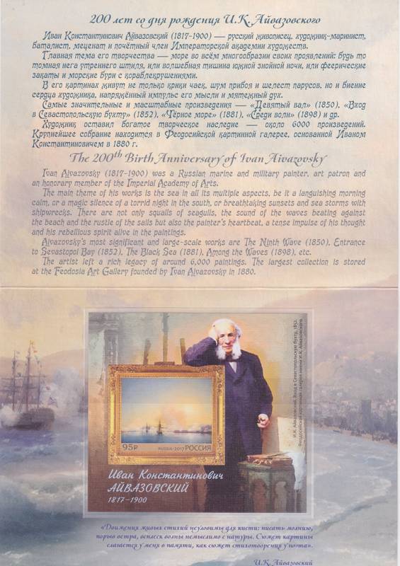 200 лет со дня рождения И.К.Айвазовского. Блок Тип II в буклете.