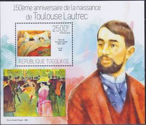 150 лет со дня рождения Тулуз Лотрека ( 1864-1901 ). Блок.