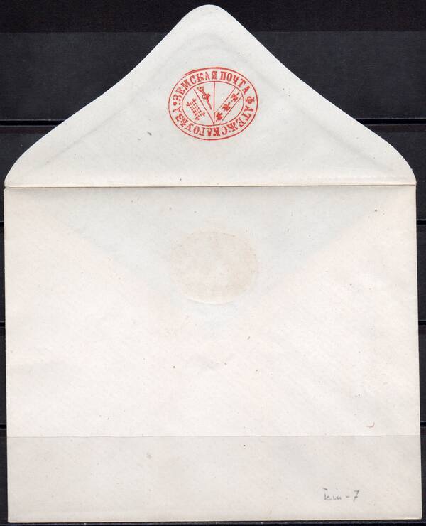 Карминово-красный штемпель Фатежского уезда. Клапан не подклеен. Косое верже. Хорошая сохранность. Размер 139 х 110.