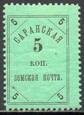 Саранский уезд: 5 коп. Чёрная на ярко-зелёной бумаге. 1 марка.