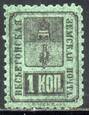 Весьегонский уезд, 1 коп. чёрная на серовато-кремовой бумаге. 1 марка