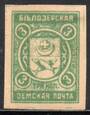 Белозерский уезд 3 коп. Жёлто-зелёная. Герб Белозерска. 1 марка.