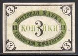 Глазовский Уезд 3 коп. чёрная и жёлто-зелёная, с прошедшей насквозь зелёной краской. 1 марка.