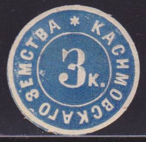 3 коп. Светло-синяя. Рельефная печать на белой бумаге. Клей жёлто-коричневый. Марка вырубалась круглым штампом.
