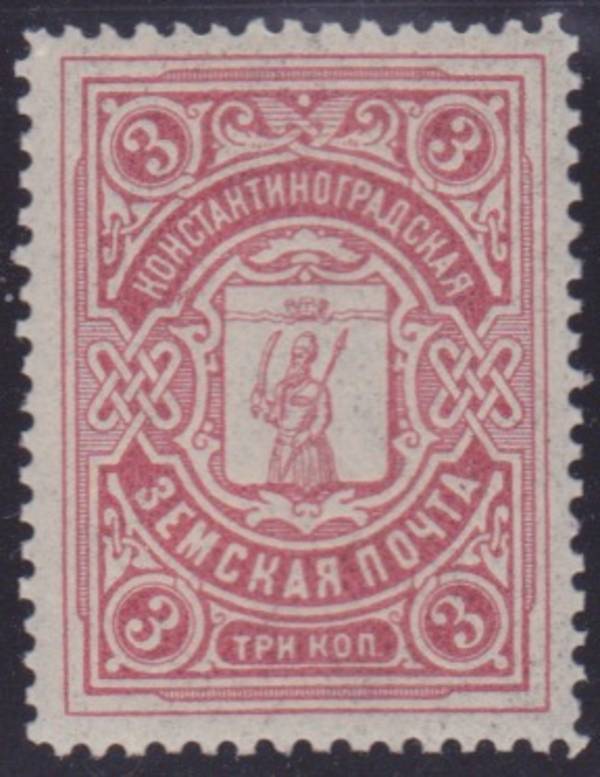Константиноградский уезд, 3 коп. Карминово-розовая. 1 марка.