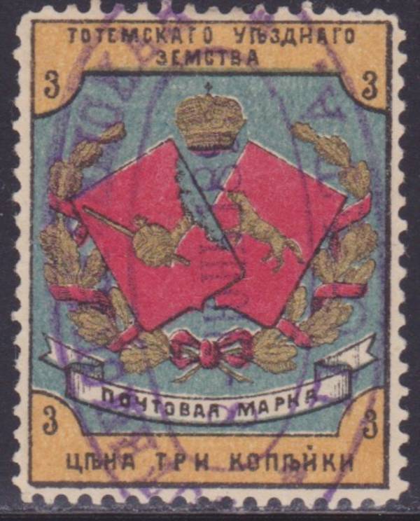 Погашена чётким календарным штемпелем: "Тотемская Почта -8 июня 1895 года".
