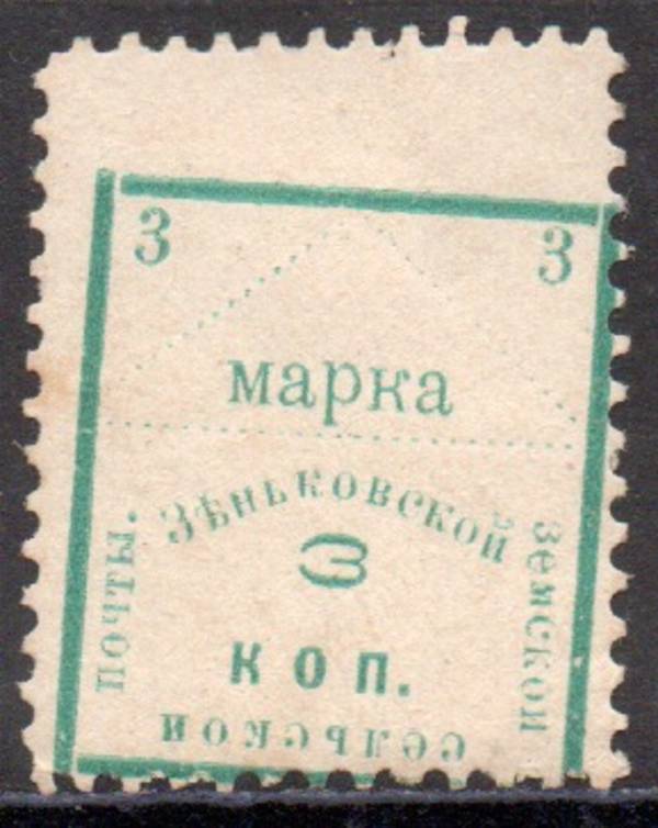 Зеньковский уезд, 3 коп. Сине-зелёная. 1 марка.