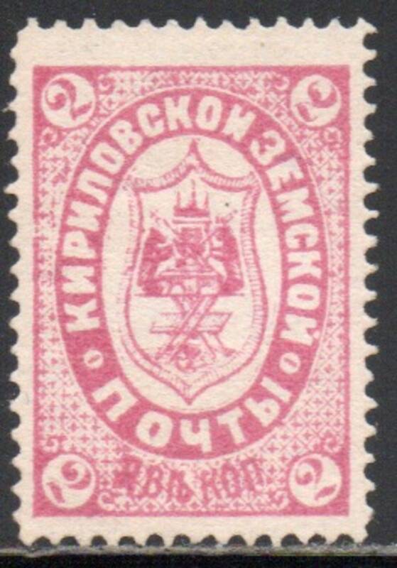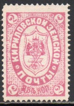 Кирилловский уезд 2 коп. карминов-красная. 1 марка.