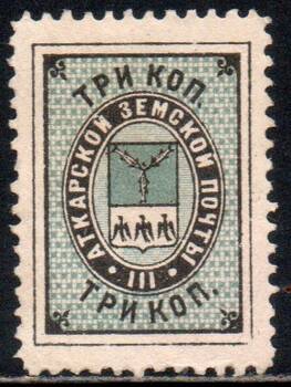 Аткарский уезд, 3 коп. чёрная и голубая. 1 марка.