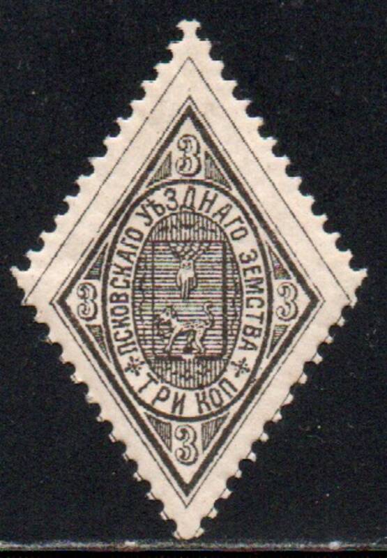Псковский уезд 3 коп. чёрная. 1 марка.