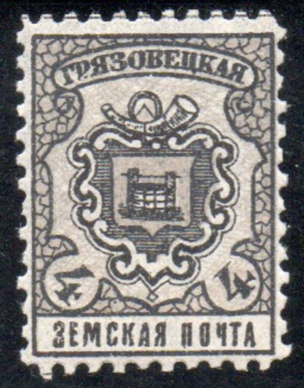 Грязовецкий уезд 4 коп. чёрная и серо-коричневая. Герб Грязовецкого уезда. 1 марка.