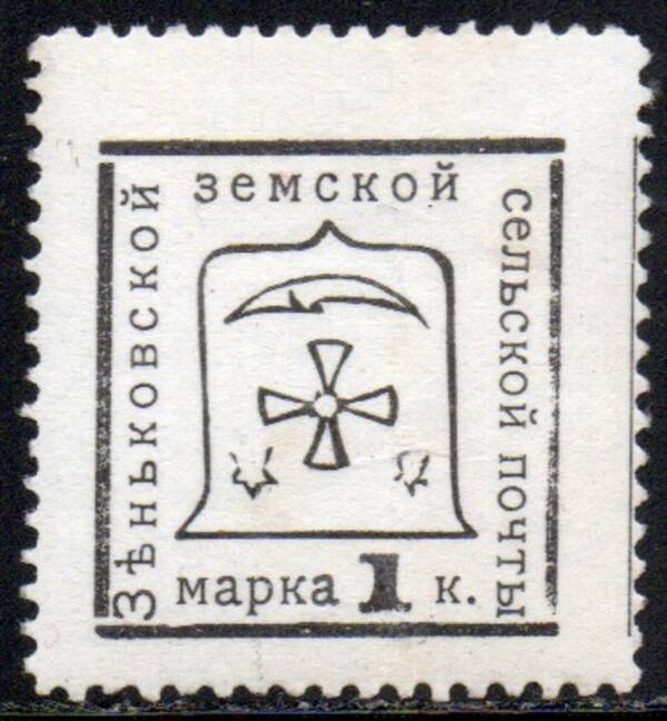Зеньковский уезд 1 коп. чёрно-коричневая. 1 марка.