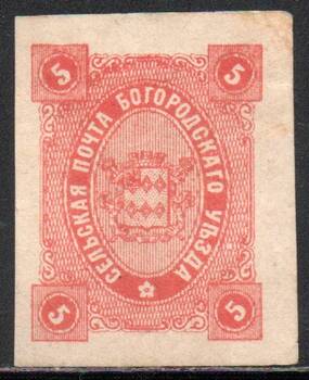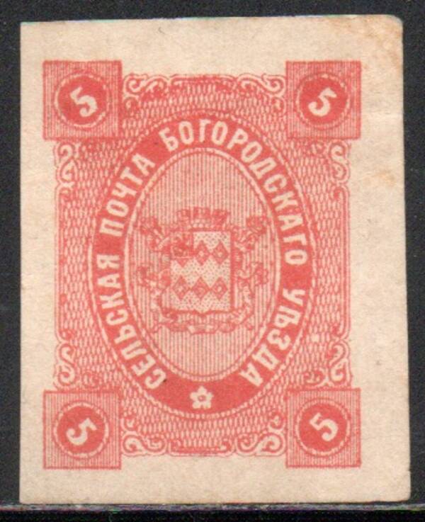 Богородский уезд 5 коп. красно-оранжевая. 1 марка.