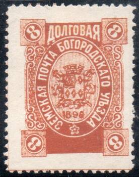 Богородский уезд 8 коп. Жёлто-коричневая. ДОЛГОВАЯ. 1 марка.