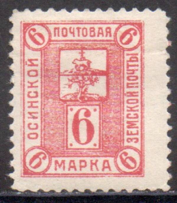 Осинский уезд 6 коп. Красная. Герб Осинского уезда. 1 марка.