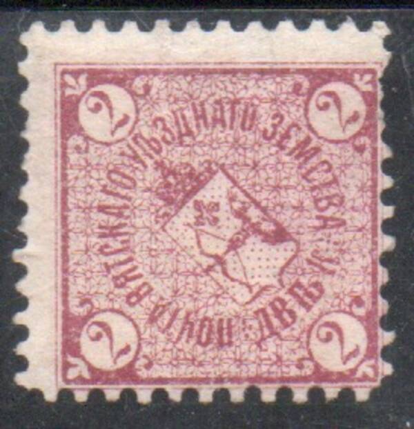 Вятский уезд 2 коп. Лилово-коричневая. 1 марка.