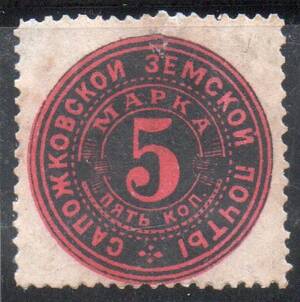 Сапожковский уезд: 5 коп. Чёрная и красная. 1 марка.