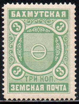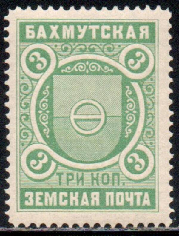Бахмутский уезд 3 коп. зелёная. 1 марка.