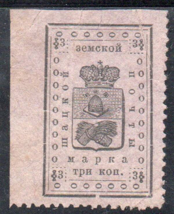 Шацкий уезд, 3 коп. Чёрная на лиловой бумаге. 1 марка.